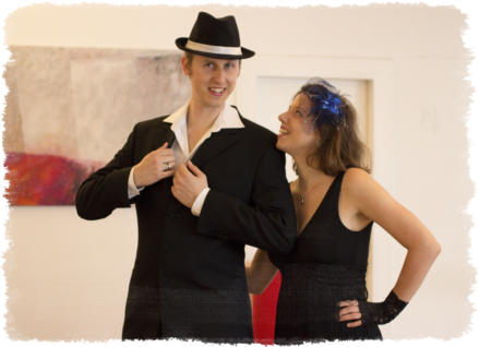 Sie können mich und meine Tanzpartnerin Talea Niesel für eine SWING-TANZ-EINFÜHRUNG buchen. Gerne zeigen wir Ihnen und Ihren Gästen die Grundschritte des Charleston oder Lindy Hop in einer etwa 30 minütigen Einführung. Nach der Tanzeinführung machen wir auf Wunsch auch eine kurze, nicht choreographierte Demo-Performance.